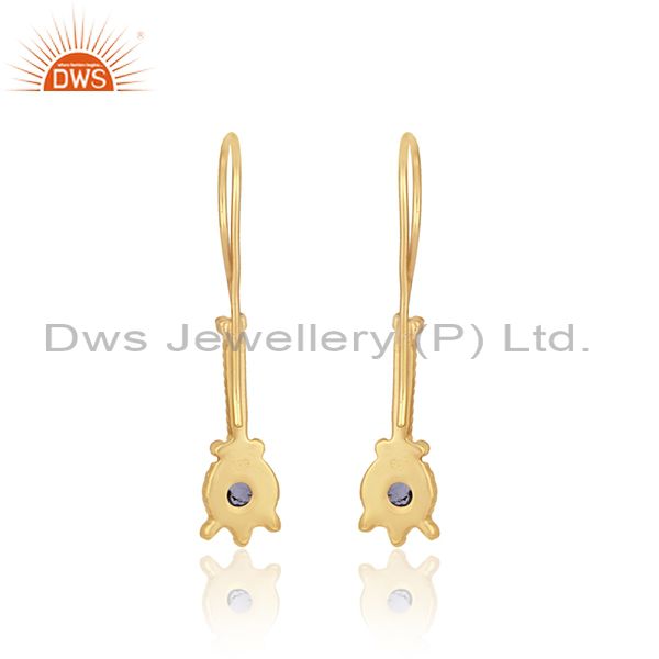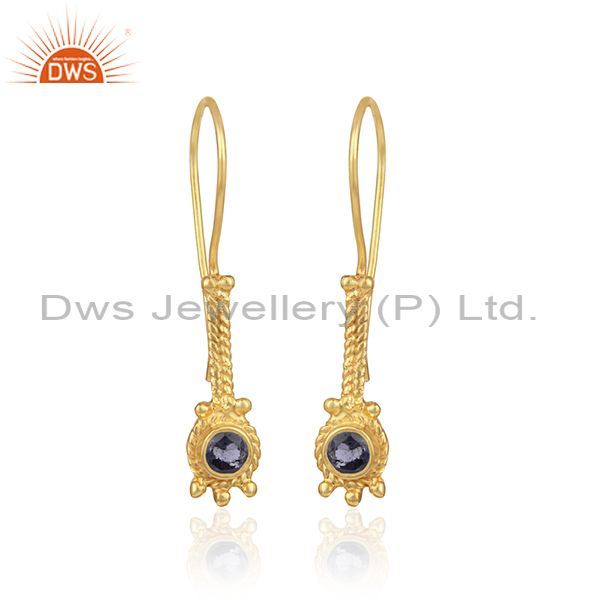 Elongated Designer Earring In Yellow Gold On Silver With Iolite