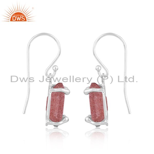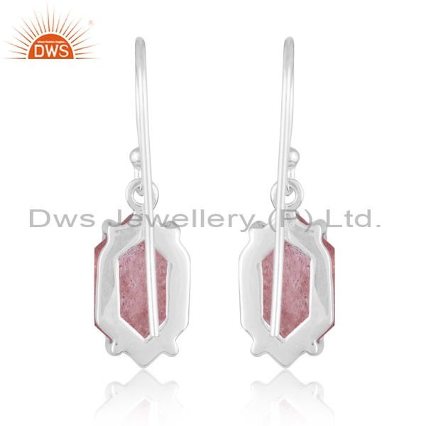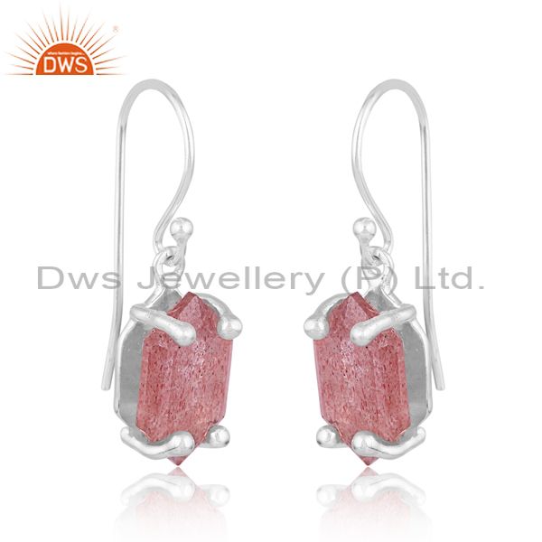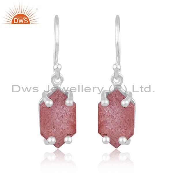 Elongated Hexagon Cut Strawberry Quartz Fine Silver Earrings