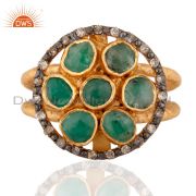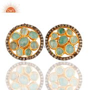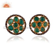 Emerald 18k Gold Plated Diamond Pave Dangle Earrings Sterling Silver Fine Jewelr