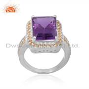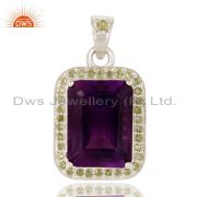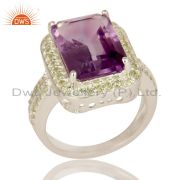 Emerald Cut Natural Amethyst Gemstone 925 Sterling Silver Dangle Earrings