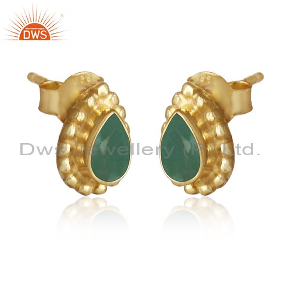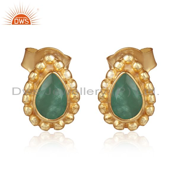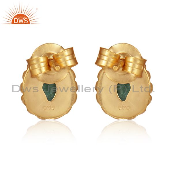 Emerald Gemstone Designer Sterling Silver Gold Plated Womens Earrings