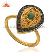 Emerald Gemstone Pave Diamond 925 Sterling Silver Stud Earring With Gold Plated
