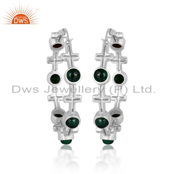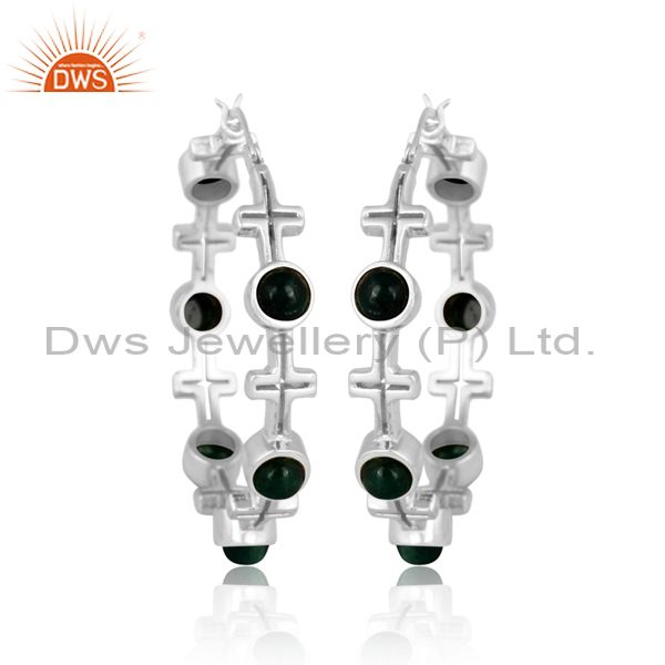 Emerald natural corundum set fine 925 silver hoop earrings