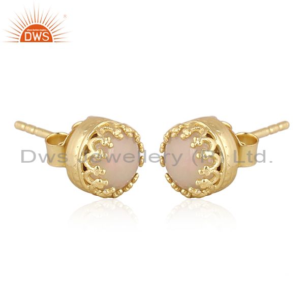 Ethiopian Opal Set Gold On Silver Classic Designer Earrings