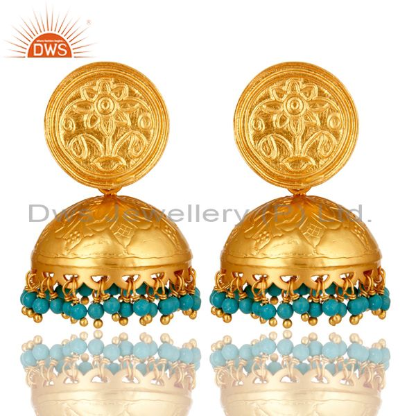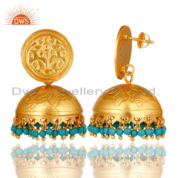 Ethnic Designer Sterling Silver Turquoise Dome Shaped Jhumka Chandelier Earrings
