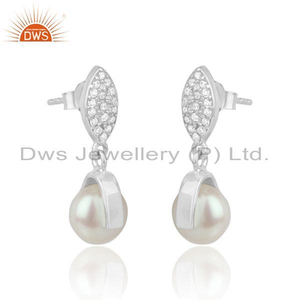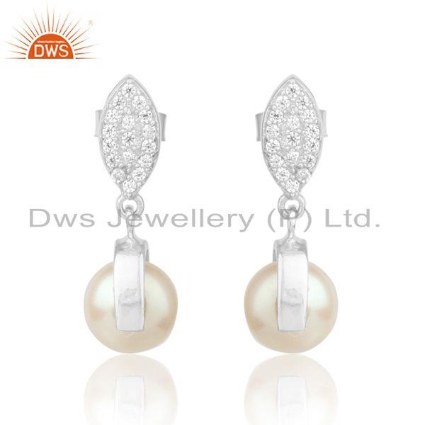 Exquisite Designer Pearl Cz Dangle In White Rhodium On Silver 925