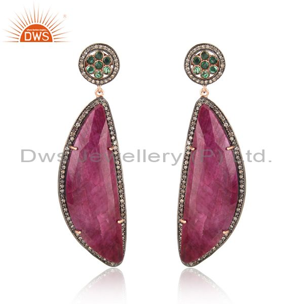 Exquisite Diamond Rose Gold on Silver Earring with Emerald and Ruby