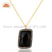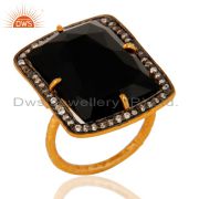 Faceted Black Onyx Gemstone Prong Set Earrings In 22K Gold Over Sterling Silver