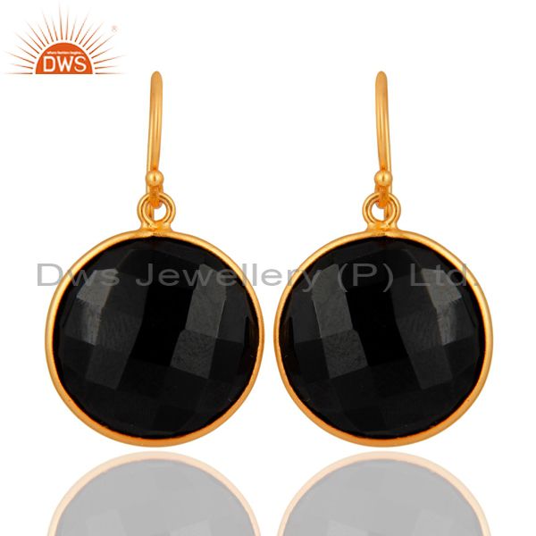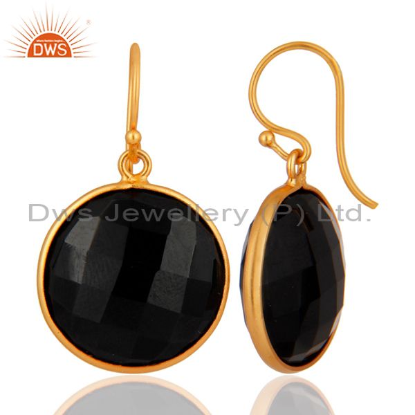 Faceted Black Onyx Gemstone Sterling Silver Bezel-Set Earrings - Gold Plated