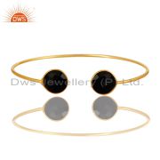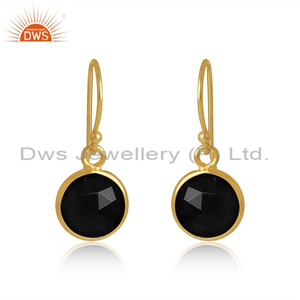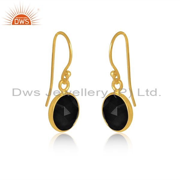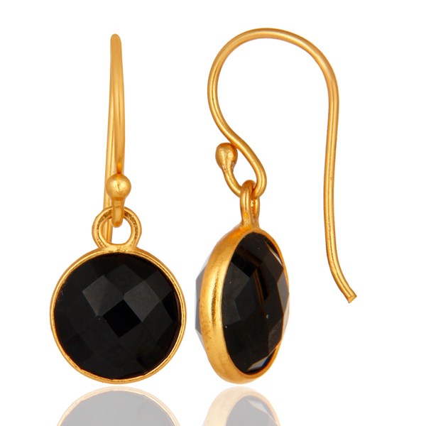 Faceted Black Onyx Gemstone Sterling Silver Dangle Earrings With Gold Plated