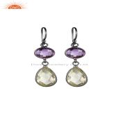 Faceted Blue Chalcedony Gemstone Gold Plated Sterling Silver Drop Earrings
