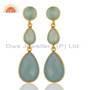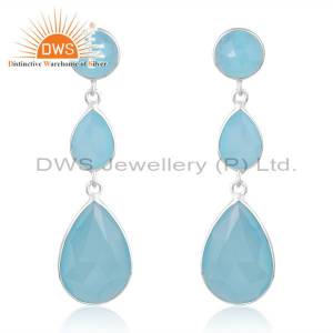 Faceted Dyed Blue Aqua Chalcedony Sterling Silver Double Drop Earrings