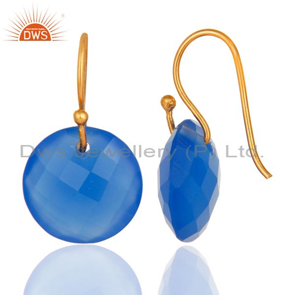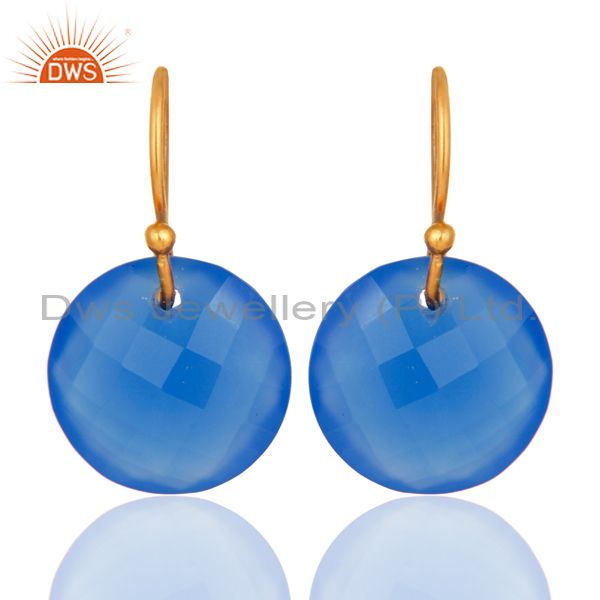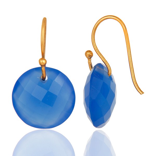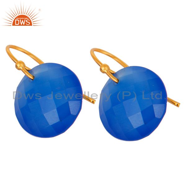 Faceted Dyed Blue Chalcedony Yellow Gold Plated Sterling Silver Hook Earrings