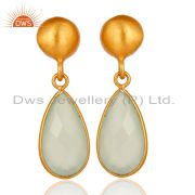 Faceted Green Chalcedony Gemstone Gold Plated Sterling Silver Dangle Earrings