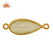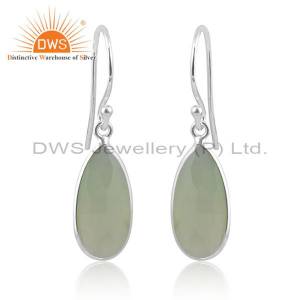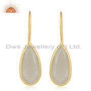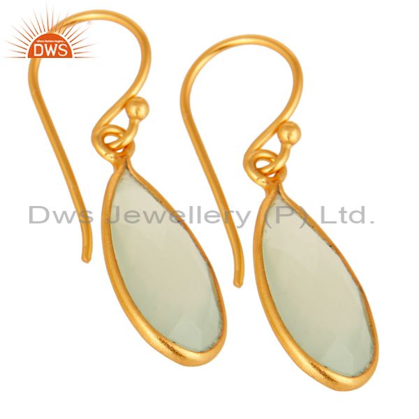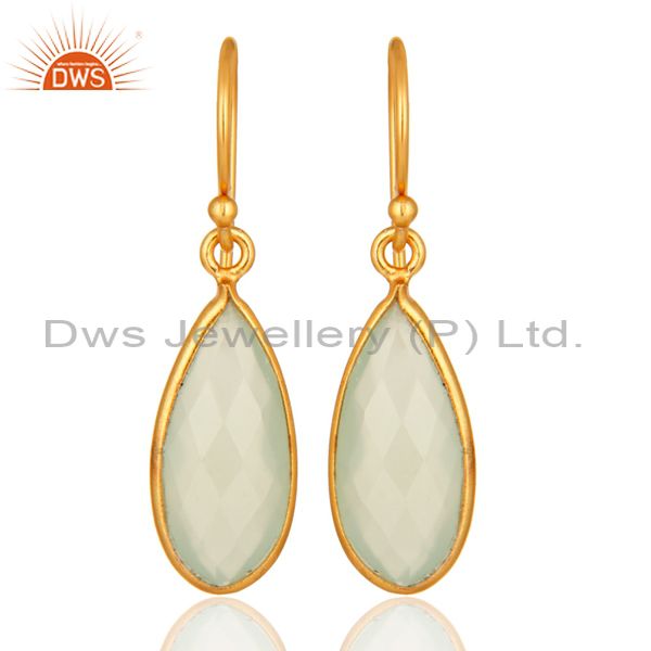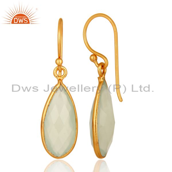 Faceted Green Chalcedony Teardrop Bezel Set Earrings 14K Gold Plated Over Silver