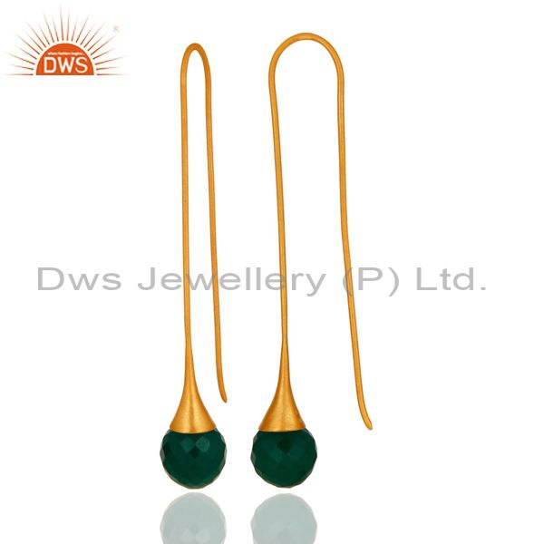 Faceted Green Onyx Briolette Dangle Earrings In 24K Gold Plated Sterling Silver