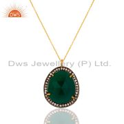Faceted Green Onyx Gemstone Sterling Silver Ladies Stud Earrings - Gold Plated