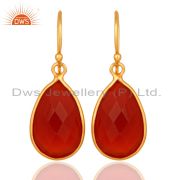 Faceted Red Onyx Solid Sterling Silver Bezel-Set Gemstone Drop Earrings