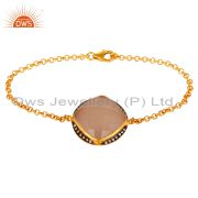Faceted Rose Chalcedony And Cz Gold Plated Sterling Silver Earrings