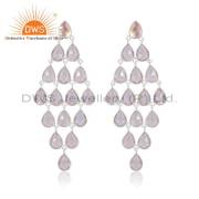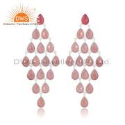 Faceted Rose Chalcedony Chandelier Earrings In 14K Gold Over Sterling Silver