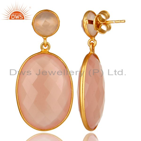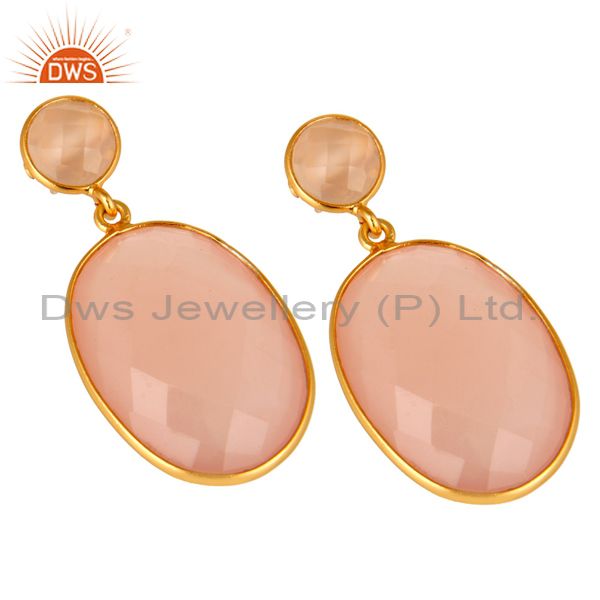 Faceted Rose Chalcedony Gemstone Drop Earrings Made In 18K Gold Over Silver