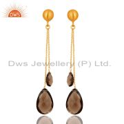 Faceted Smoky Quartz Gemstone Bezel Drop Earrings - Gold Plated Sterling Silver