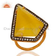 Faceted Yellow Moonstone 18K Gold Plated 925 Sterling Silver Earring With CZ