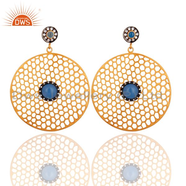 Filigree Design Handcrafted 925 Sterling Silver Chalcedony Gold Plated Earrings