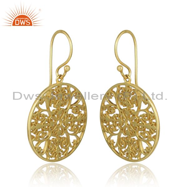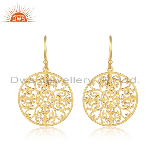Filigree Mandala Design Gold on Silver 925 Dangle Earring
