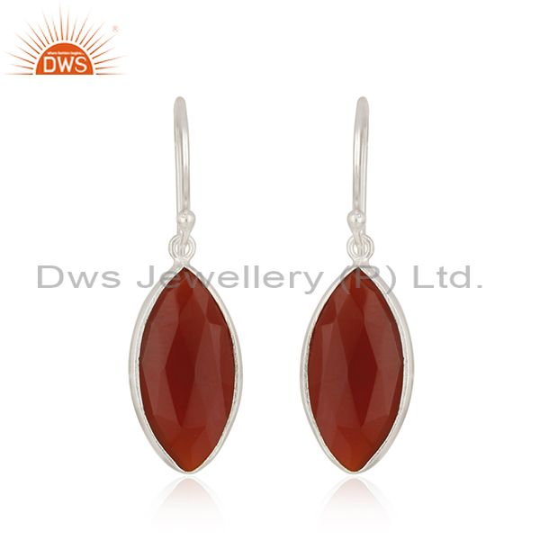 Fine 925 Sterling Silver Red Onyx Gemstone Earrings Supplier