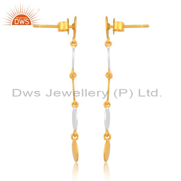 Fine And Brass Gold Round Long Drop Handmade Classy Earrings