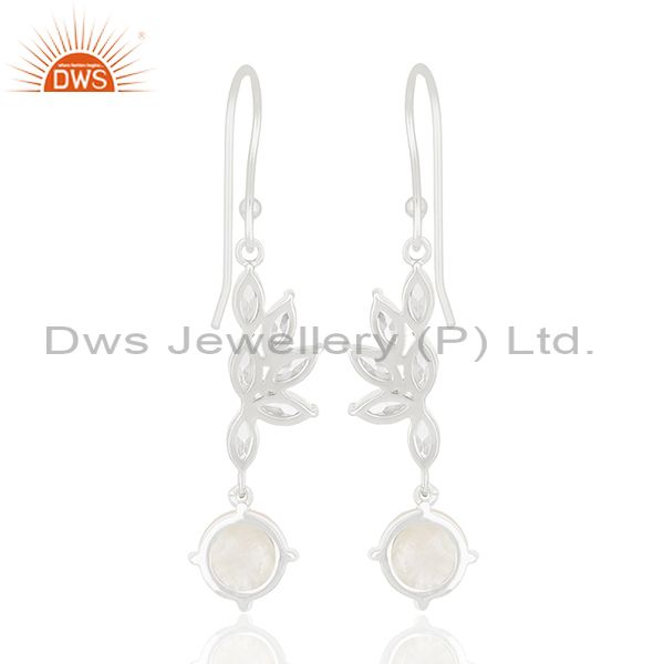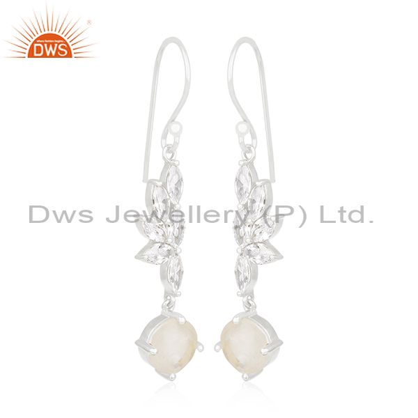 Fine Silver Plated Brass Rainbow Moonstone and Cz Gemstone Earring Manufacturers