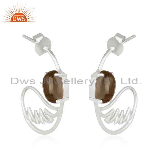 Fine Sterling Silver Angel Wing Smoky Quartz Gemstone Earring Manufacturer
