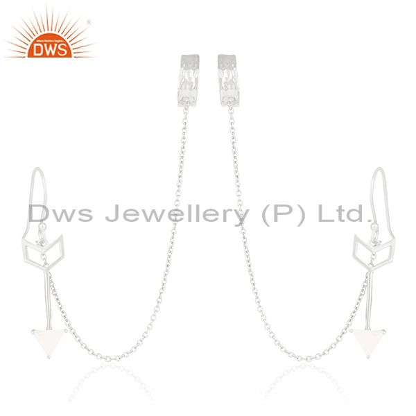 Fine Sterling Silver Arrow Sign Moonstone Ear Cuff Earrings Manufacturer