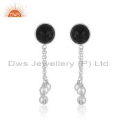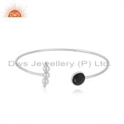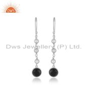 Fine Sterling Silver Black Onyx Gemstone Hoop Earrings for Girls Jewelry