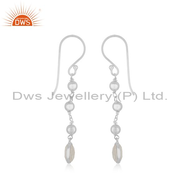 Fine Sterling Silver Rainbow Moonstone Dangle Earring Wholesaler India