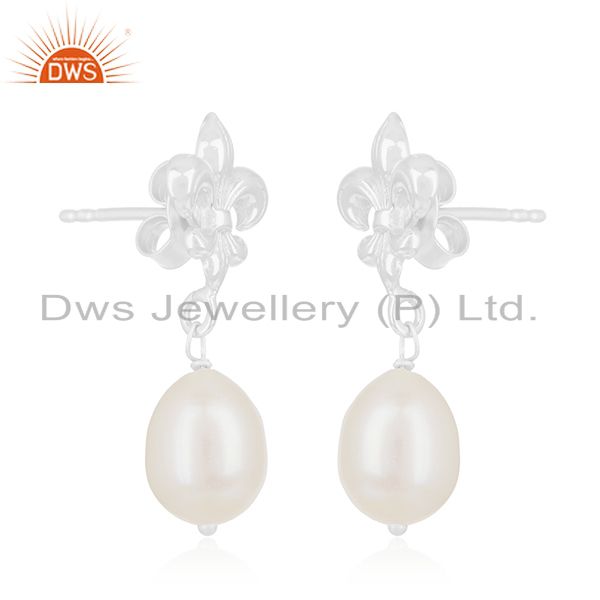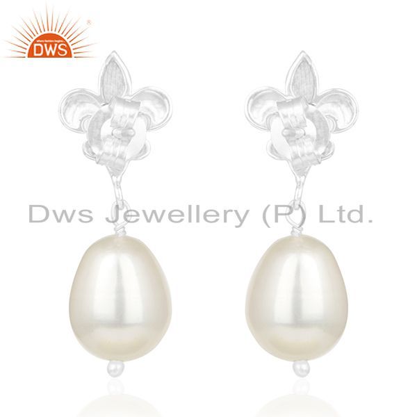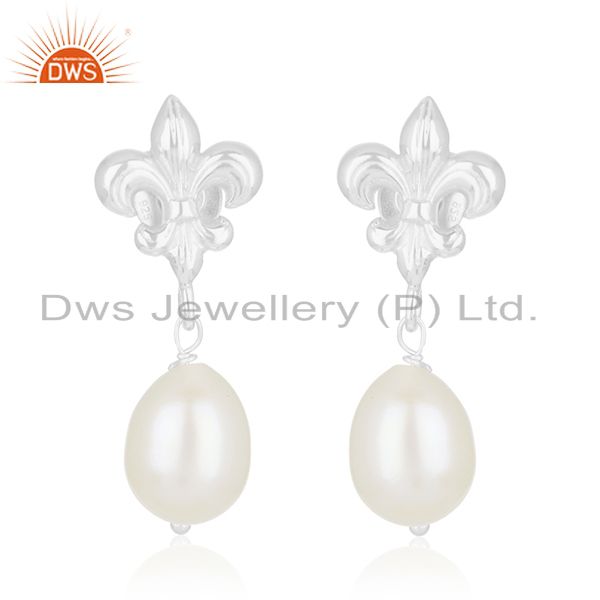 Fleur De Lis Royal Sign 925 Silver Natural Pearl Drop Earrings Manufacturer