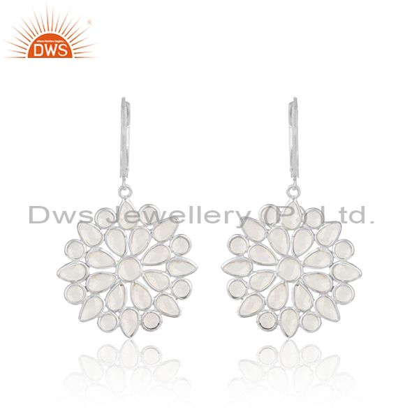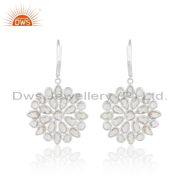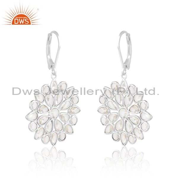 Floral Cz Cluster Dangle Earring in Silver 925 Lever Back Closure
