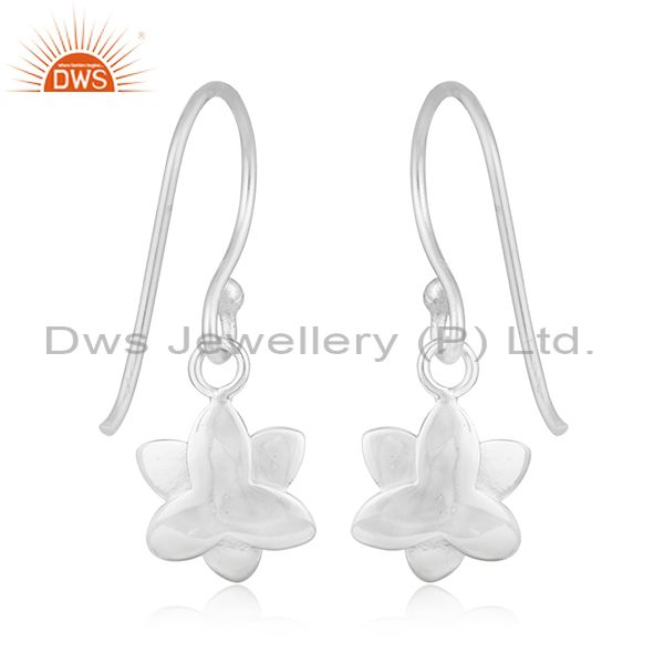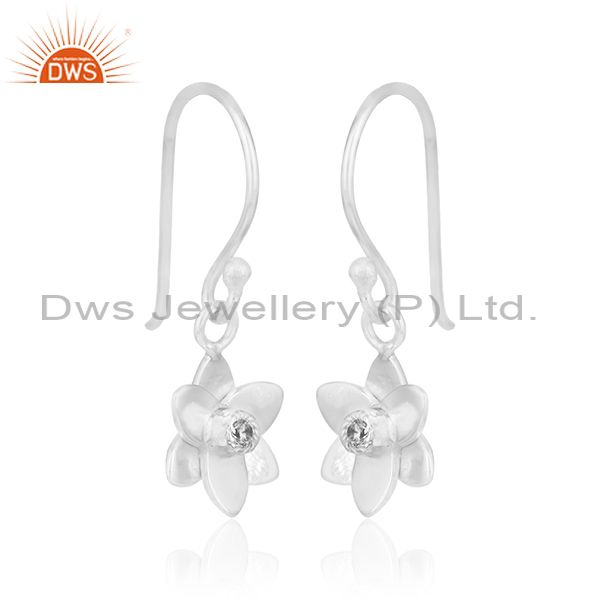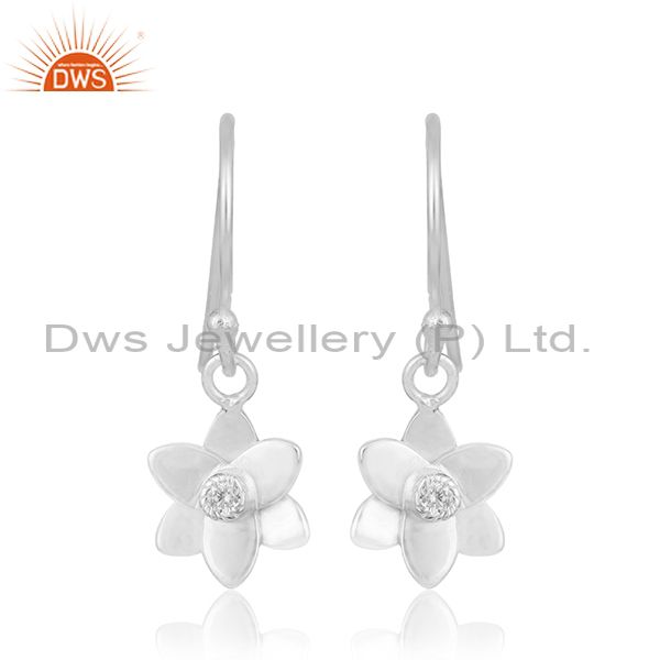 Floral Design Fine Silver Plated Brass White Zircon Drop Earring Manufacturer