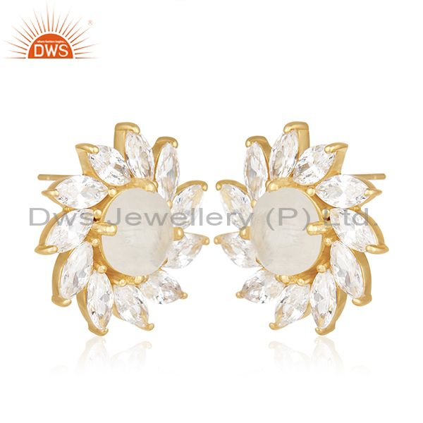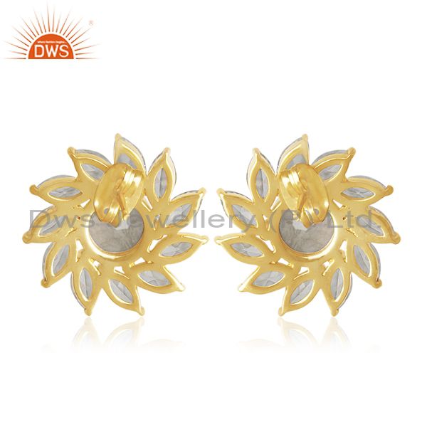 Floral Design Gold Plated Brass Fashion Gemstone Wedding Stud Earrings Wholesale