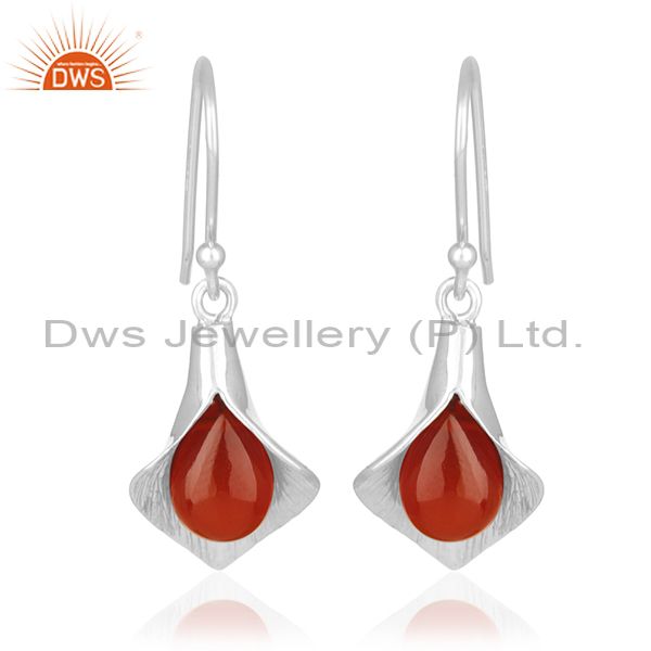 Floral Design Sterling 92.5 Silver Carnlian Gemstone Earring Wholesale Suppliers