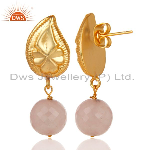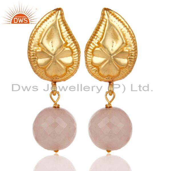 Flower Carving Dyed Chalcedony Drops Brass Earrings Made In 14K Gold Plated