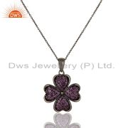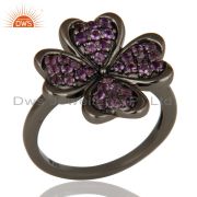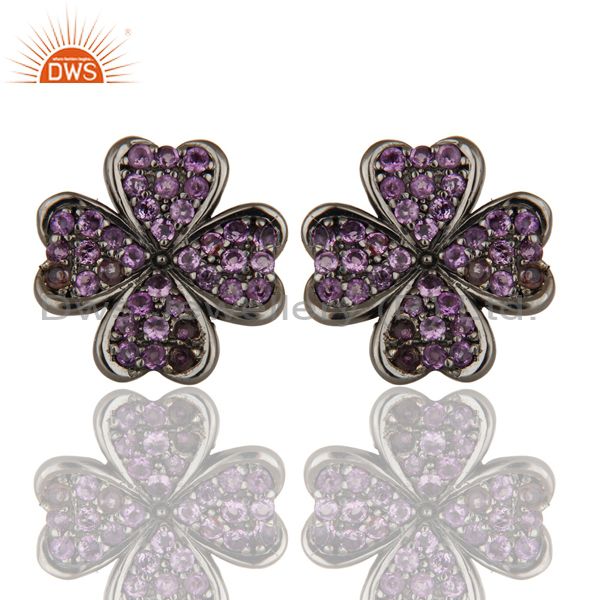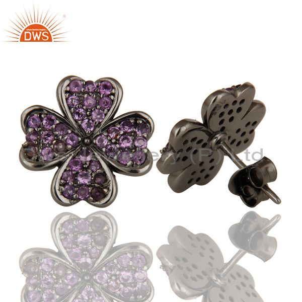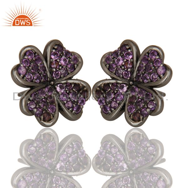 Flower Design Stud Black Oxidizd Sterling Silver Stud With Amethyst