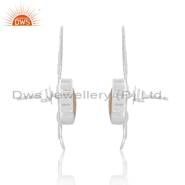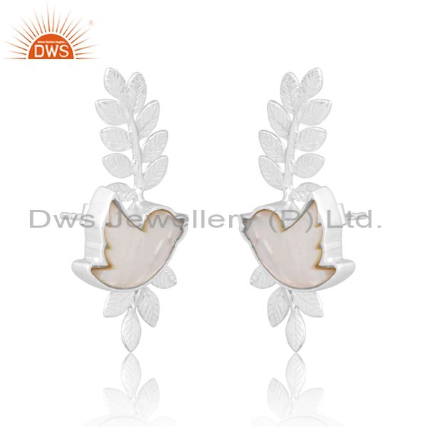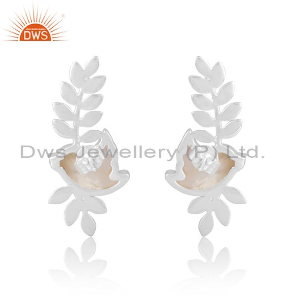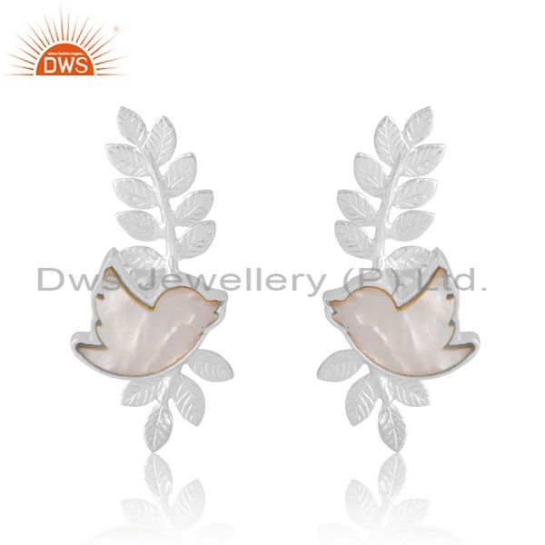 Fly Bird Stud On A Leaf With Mother Of Pearl Cabushion