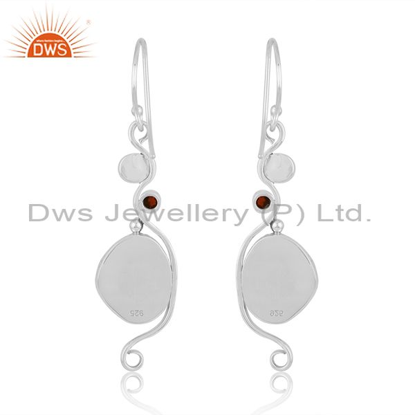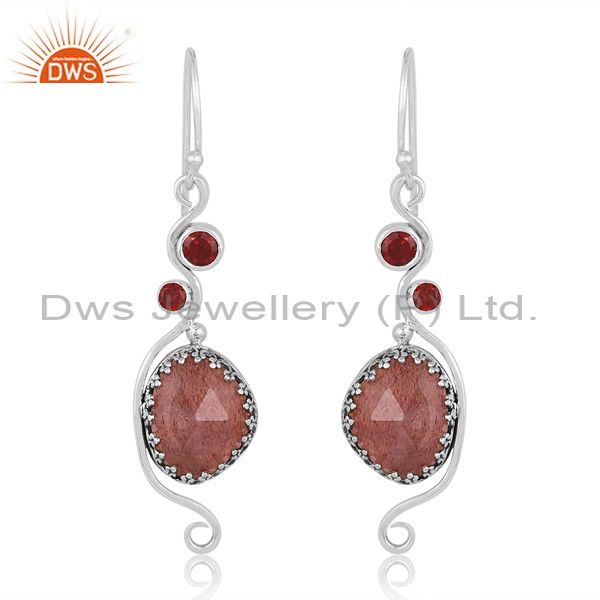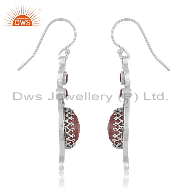 Garnet & Strawberry Quartz On Oxidized Silver Earring