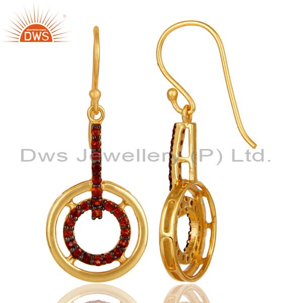 Garnet and 18K Gold Plated Sterling Silver Gemstone Drop Earring