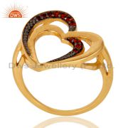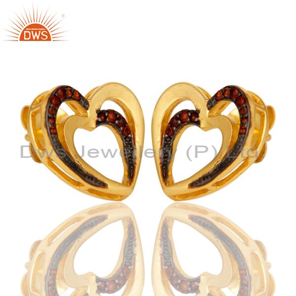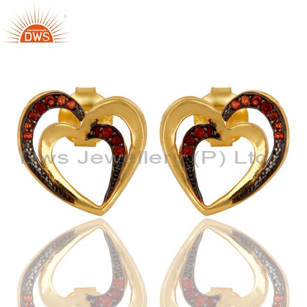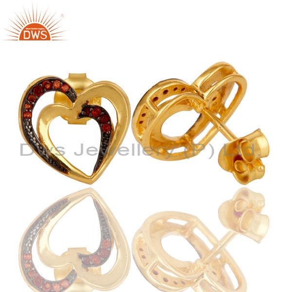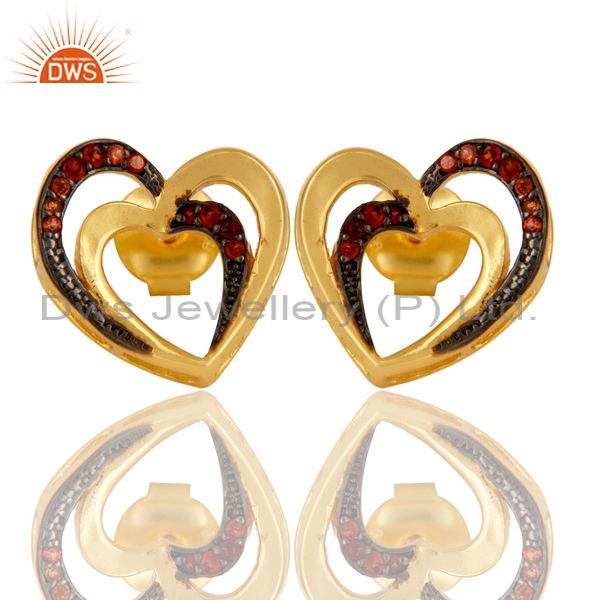 Garnet and 18K Gold Plated Sterling Silver Heart Shape Ear Stud