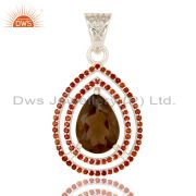 Garnet And Smoky Quartz Gemstone Sterling Silver Dangle Earrings
