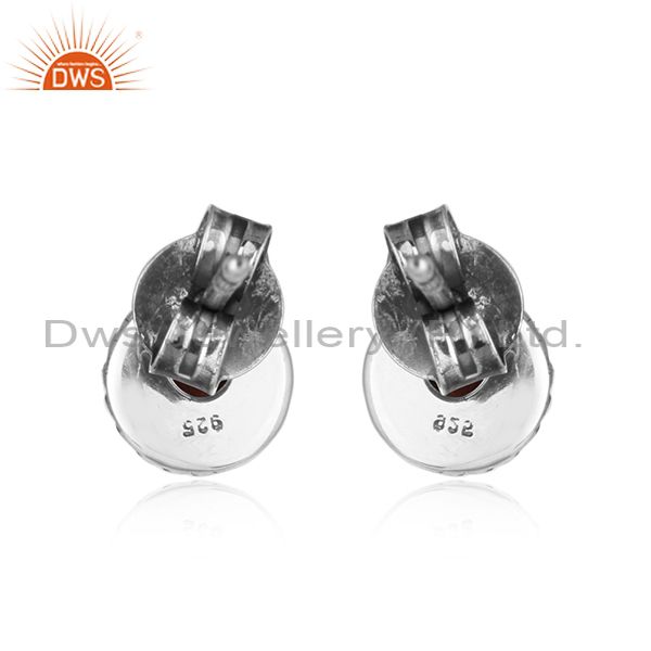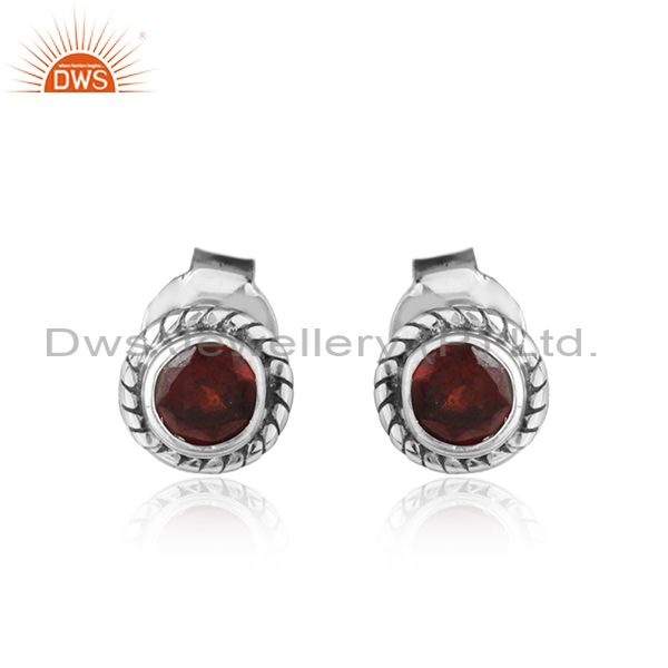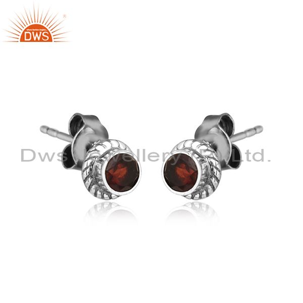 Garnet Gemstone Oxidized Sterling Silver Handmade Stud Earrings