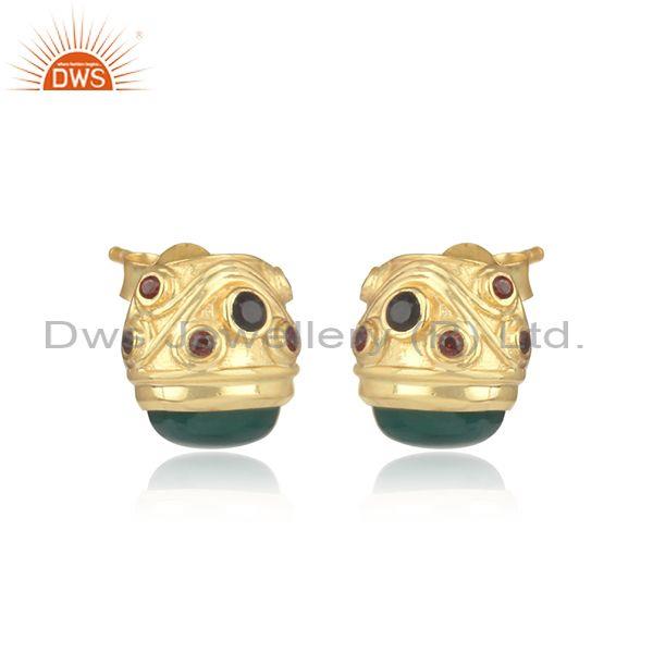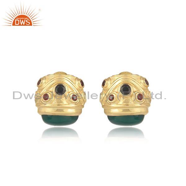 Garnet, Green And Black Onyx Set Gold On Silver Casual Tops